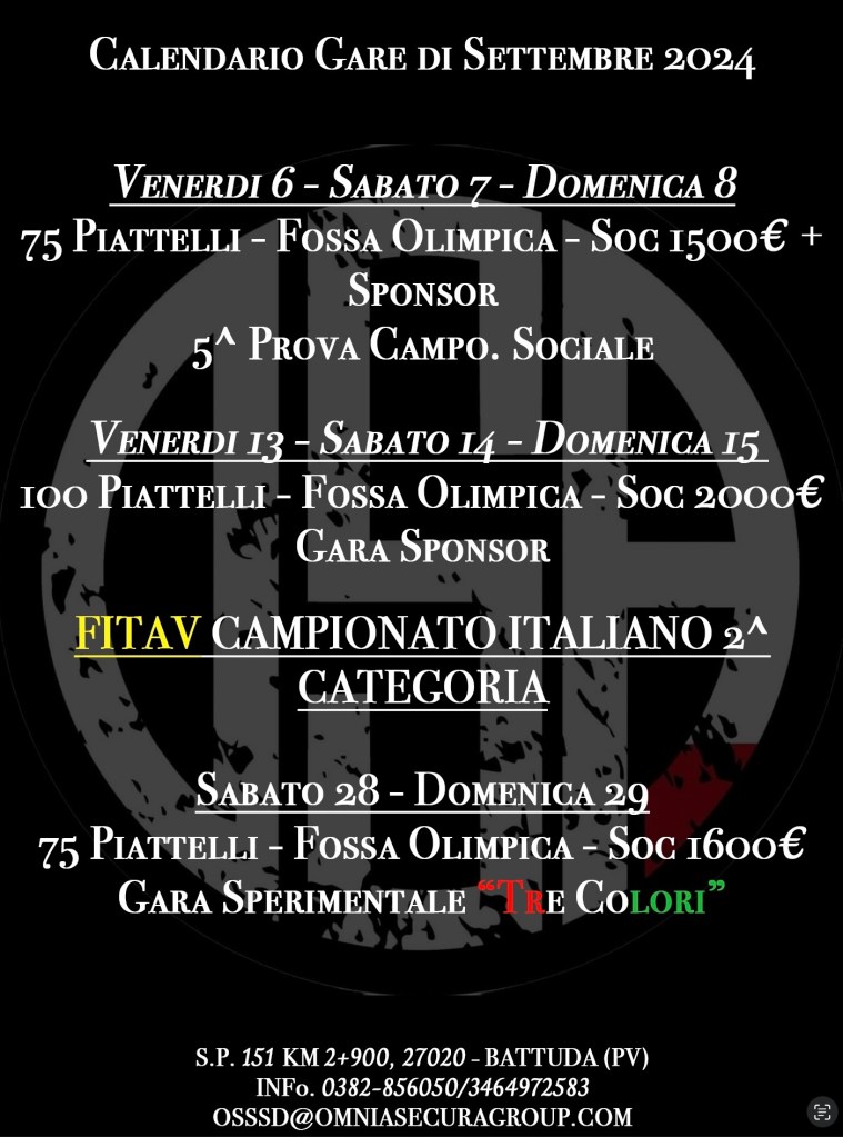 Gara 100 Piattelli a scorrere Fossa Olimpica Montepremi 2000€